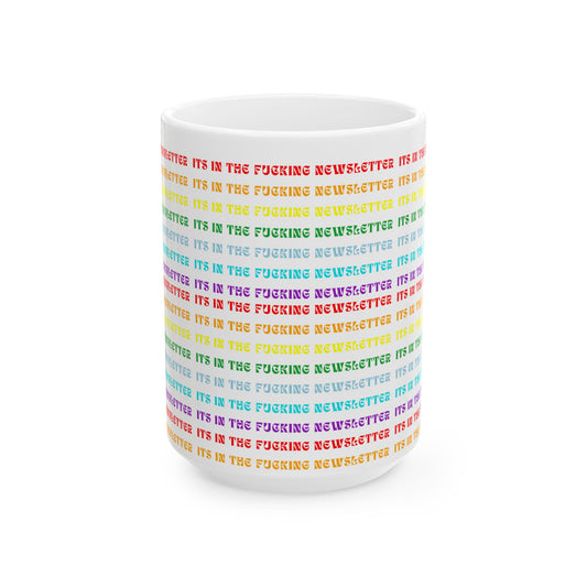 It's In the F'ing Newsletter Rainbow Mug (Sweary)