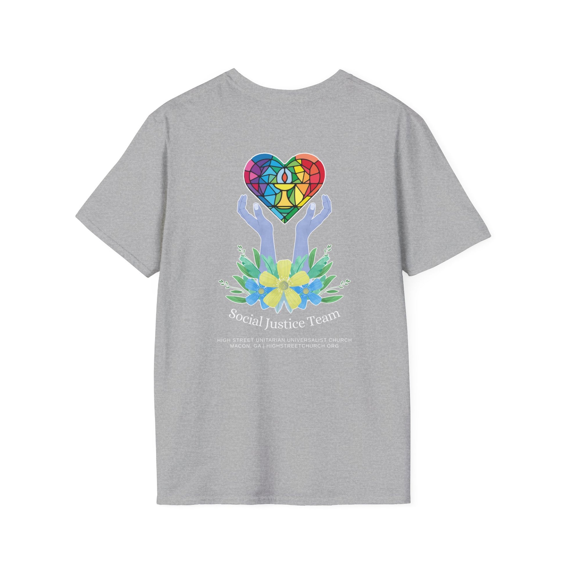 The unisex soft-style t-shirt puts a new spin on casual comfort. Made from very soft materials, this tee is 100% cotton for solid colors. Heather colors and sports grey include polyester. The shoulders have twill tape for improved durability. There are no side seams. The collar is made with ribbed knitting to prevent curling damage.