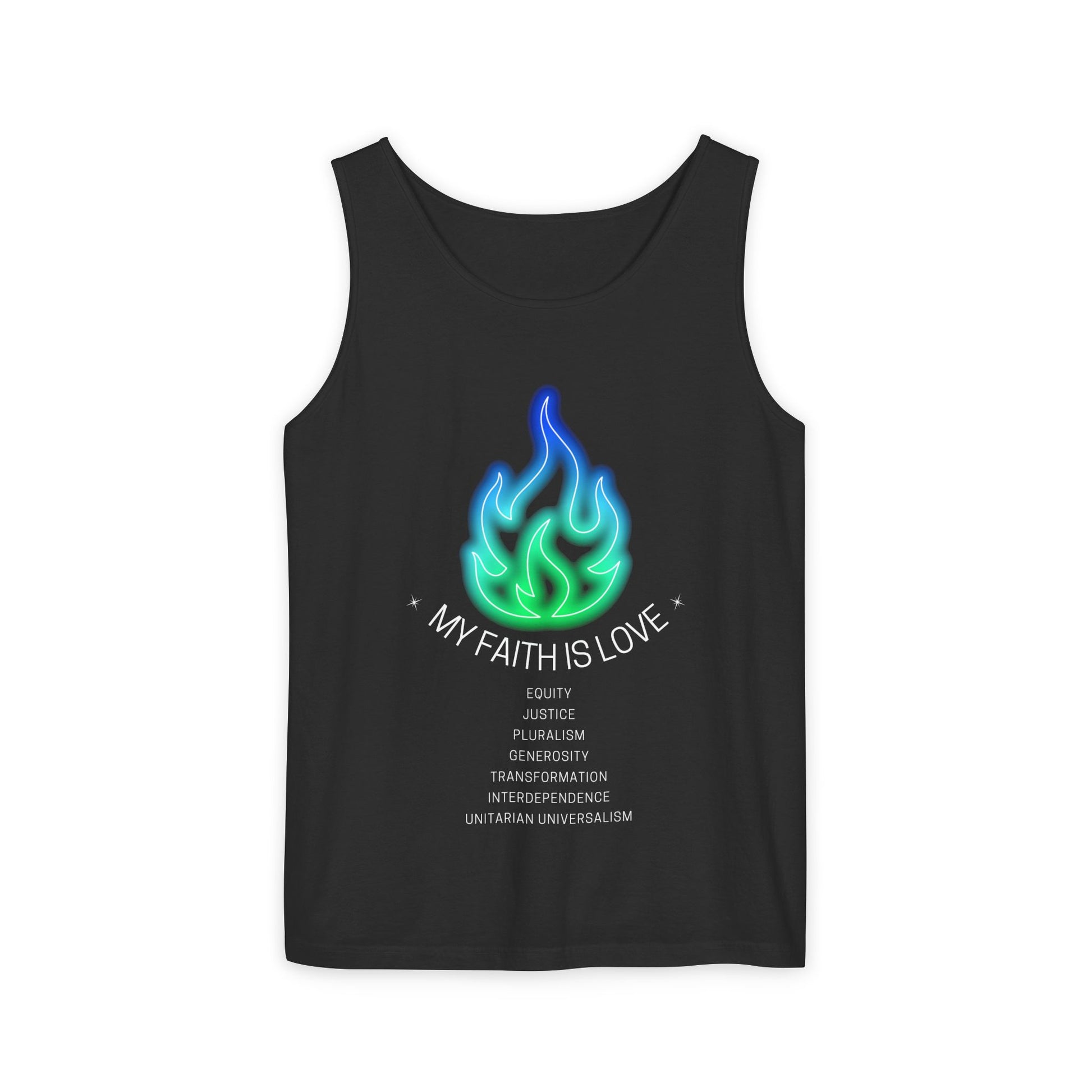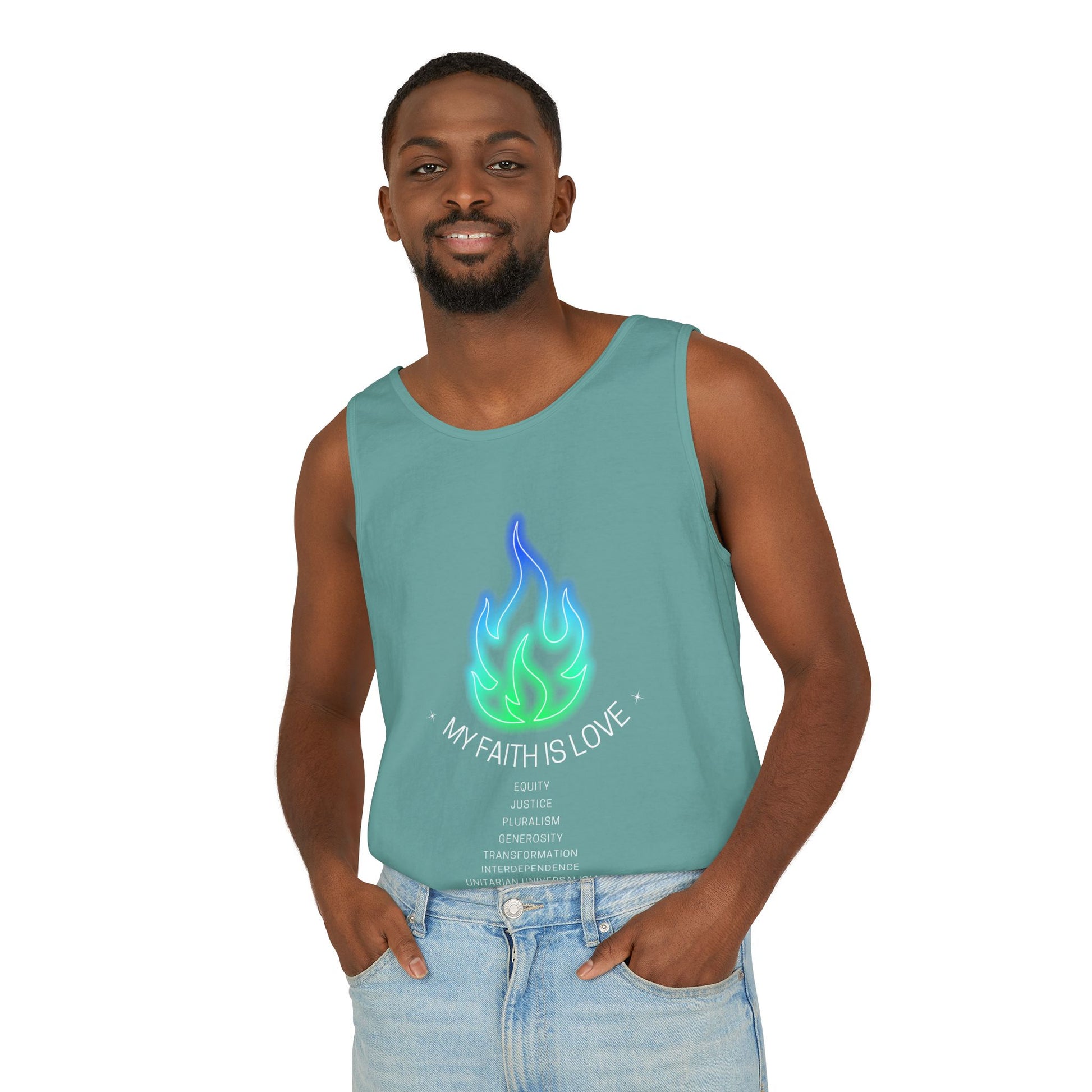 My Faith is Love - Green and Blue Version - Unisex Garment-Dyed Tank Top